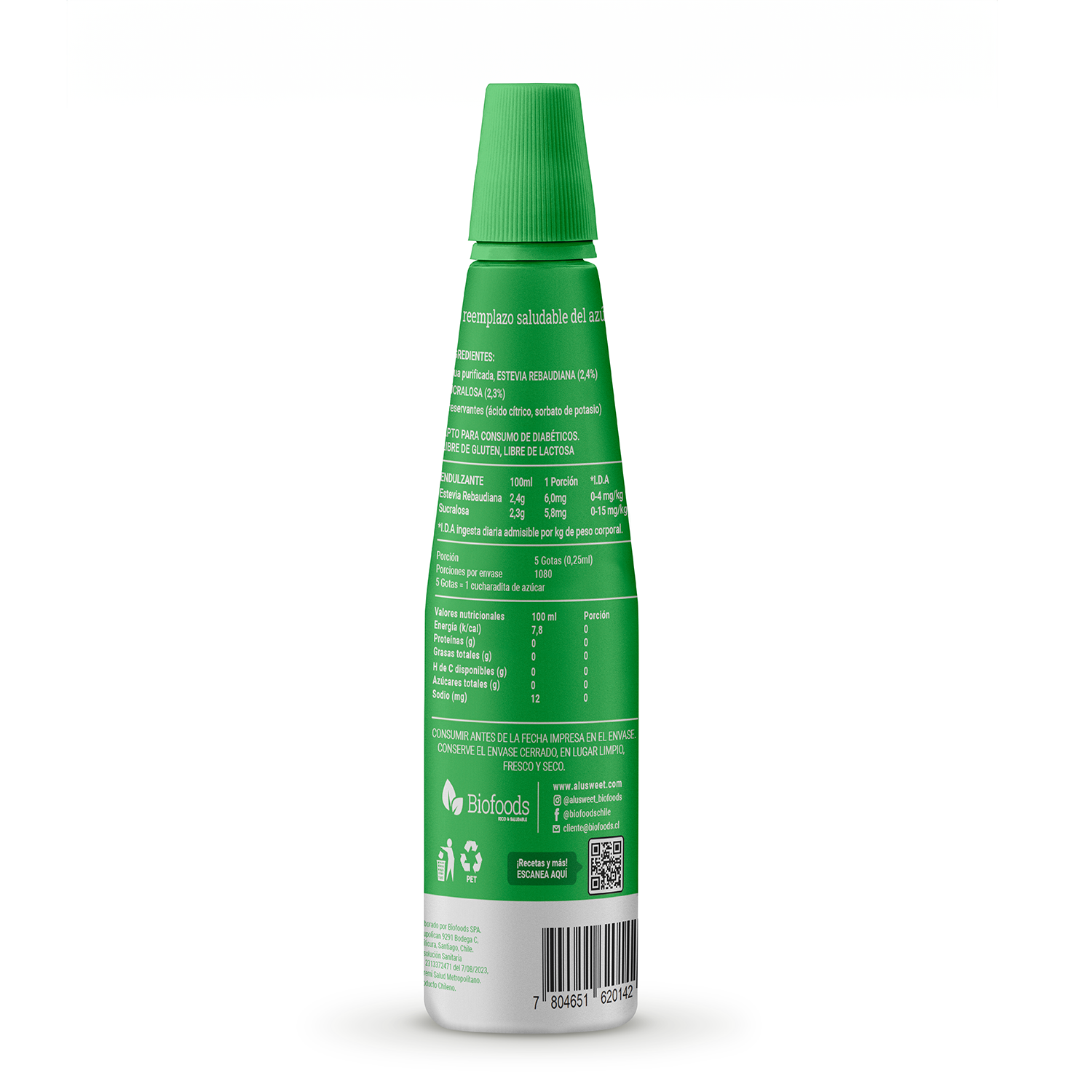 - Contenido: AluSweet Alulosa 360ml + Tagatosa 360ml + Stevia 270ml